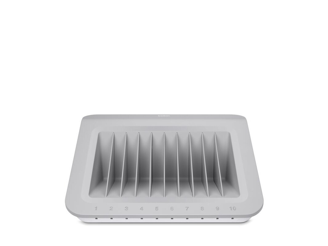 Designed for K–12 learning environments, the station can store and charge different kinds of devices at the same time, each with its own charging cable or adapter. And the open setup won’t interfere with wireless syncing.A built-in surge protector provides protection against voltage spikes, and the built-in cable management minimizes clutter. The Belkin Store and Charge offers an elegant, accessible, and affordable mobile device management solution.