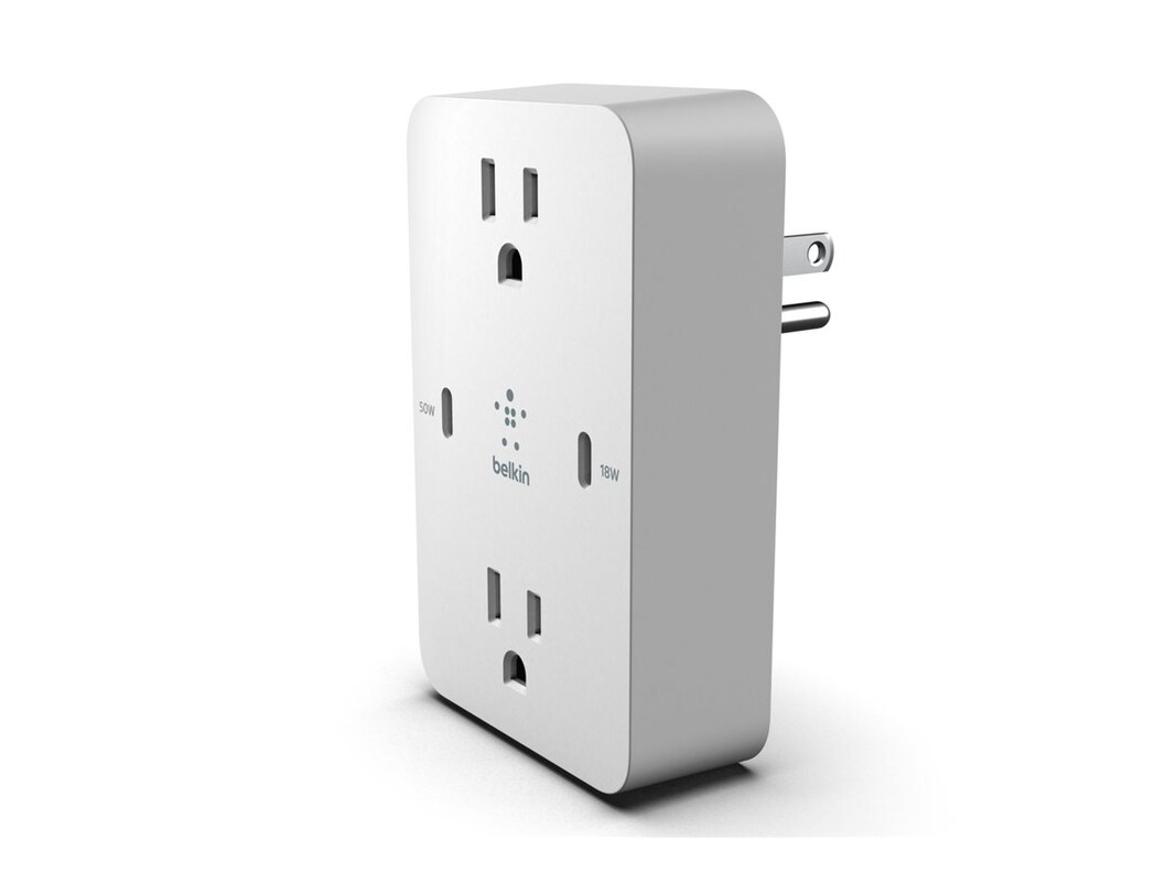 Belkin GaN wall plate offers a convenient and space-saving solution to add two high-power charging ports to your wall outlet. You'll charge your USB-C devices while keeping two AC outlets to plug in a printer and monitor in a home office or kitchen appliances, lamps, or a TV throughout the rest of the house. Equipped with GaN technology, this wall plate enables 68W for high-power charging of larger devices in a convenient size. The wall plate can fast charge two USB-C devices up to 68W (max 50W and 18W output respectively) combined while two appliances or other devices are connected to the AC outlets.
