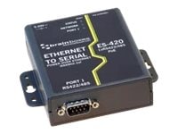 ES-420 is an Ethernet to serial device adapter with Power over Ethernet providing access to two RS-422/485 serial ports. High data transfer rates deliver uncompromising performance. Power over Ethernet (PoE) uses IEEE 802.3af standard, compatible with any PoE switch. ES range provides simple instant networked serial ports. RS-485 half duplex configuration with autogating provides trouble free data transmission due to automatic control of data direction. A web interface allows secure configuration and control of the serial ports over a local network or the Internet using any browser.
