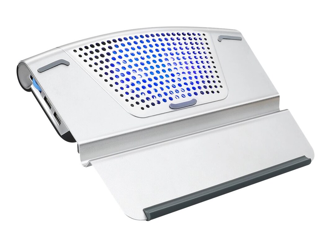 The OTM Essentials adjustable riser laptop stand helps raise your laptop to an ideal working position.