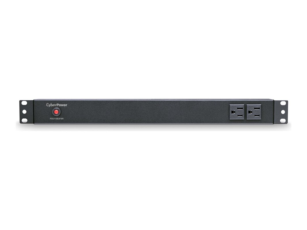 The CyberPower 10-outlet (2 Front and 8 Rear) rack mount basic power distribution unit (PDU15B2F8R) provides 120V, 15A output. It distributes power to (10) NEMA 5-15R receptacles from a single NEMA 5-15P input, with unfiltered electrical pass-through. Designed for datacenters and other electrically demanding applications, this unit has a rugged, industrial-grade metal housing and a 15-foot AC power cord. It can be mounted either horizontally or vertically, includes a cord retention tray and is ETL/RoHS certified. A lifetime warranty ensures that this PDU is free of defects in design, assembly, material or workmanship.