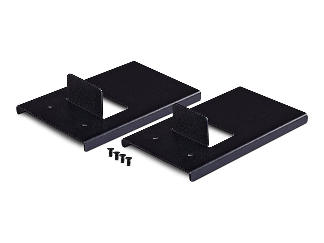 This set of steel brackets allows for a CyberPower OR series 1U UPS to be stood up vertically on the floor. The brackets attach to either of side the unit, near the bottom, to provide stability and keep the unit upright.