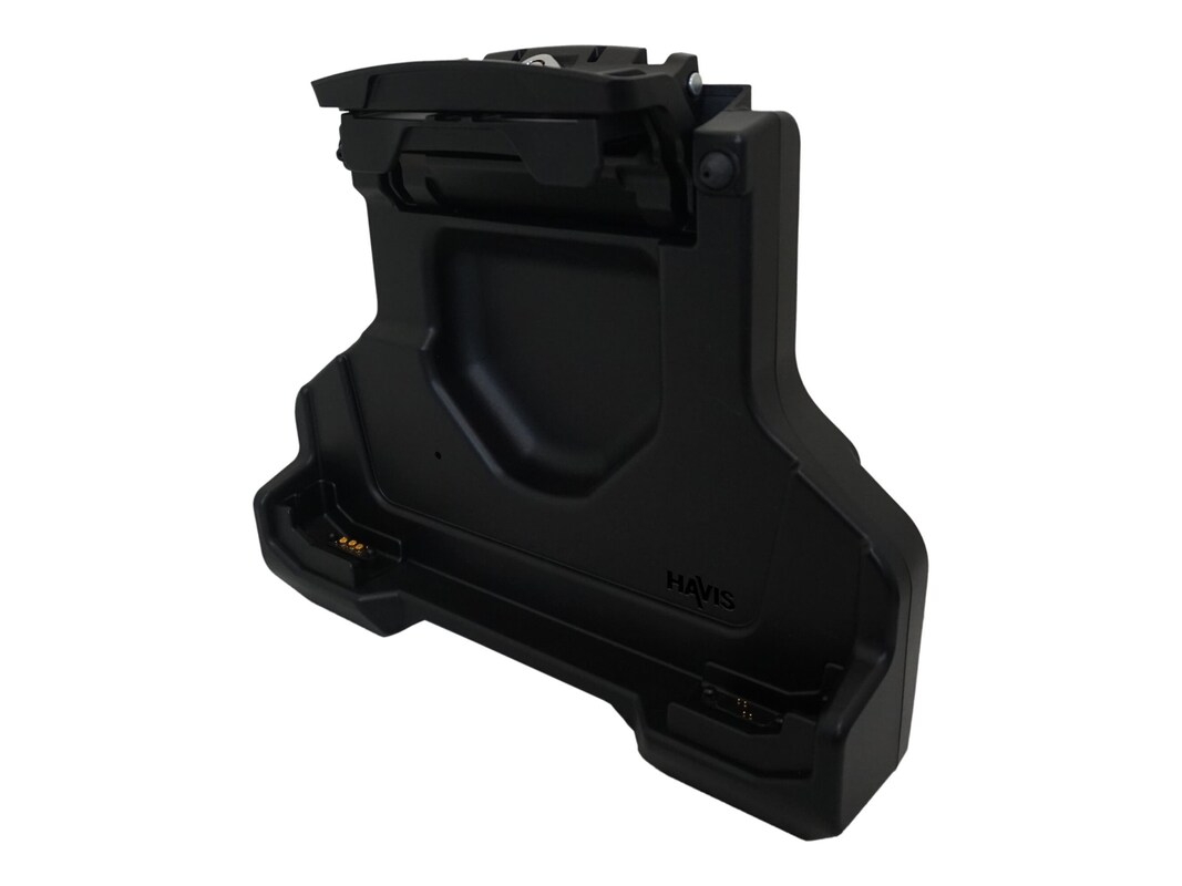The Havis DS-ZEB-501 docking station is designed for versatility and ease of use, making it a choice for tablets. It features a compact and lightweight construction that ensures portability without sacrificing performance. The integrated cable management system keeps your setup tidy, while the rounded corners and edges provide a sleek look and added safety.