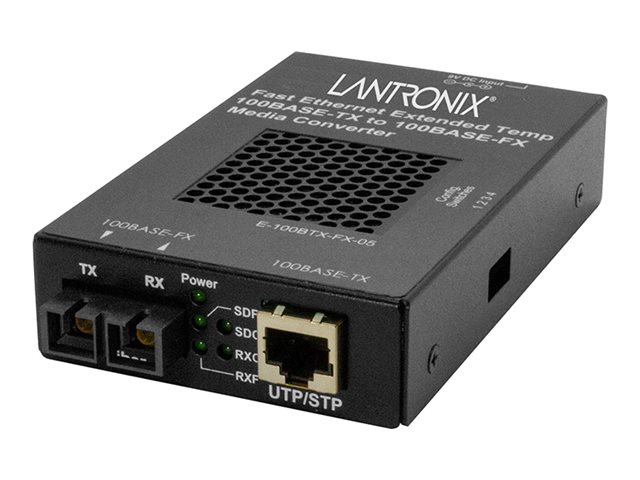 The Lantronix E-100BTX-HT Series fiber media converter offers reliable connectivity solutions to meet various environmental requirements. With a wide operational temperature range of -25°C to 65°C and a humidity tolerance of 5 - 95%, this device ensures consistent performance in diverse conditions. Equipped with two connectors including an SC single-mode connector and an RJ-45, it supports Ethernet 100Base-FX and 100Base-TX, making it a versatile option for networking needs.