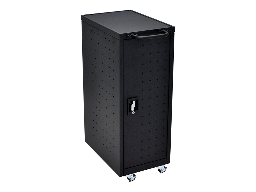 At only 14" wide, this slender charging cart provides a space-saving solution for keeping laptops and Chromebooks fully charged and safely stored. Solid steel construction provides strong protection and, like all Luxor charging carts, rubber-coated dividers that won't scratch devices and provide impact protection during transit. Its four casters make it easy to move from location to location and assembly is simple - just attach the casters and handle and you're ready to roll.