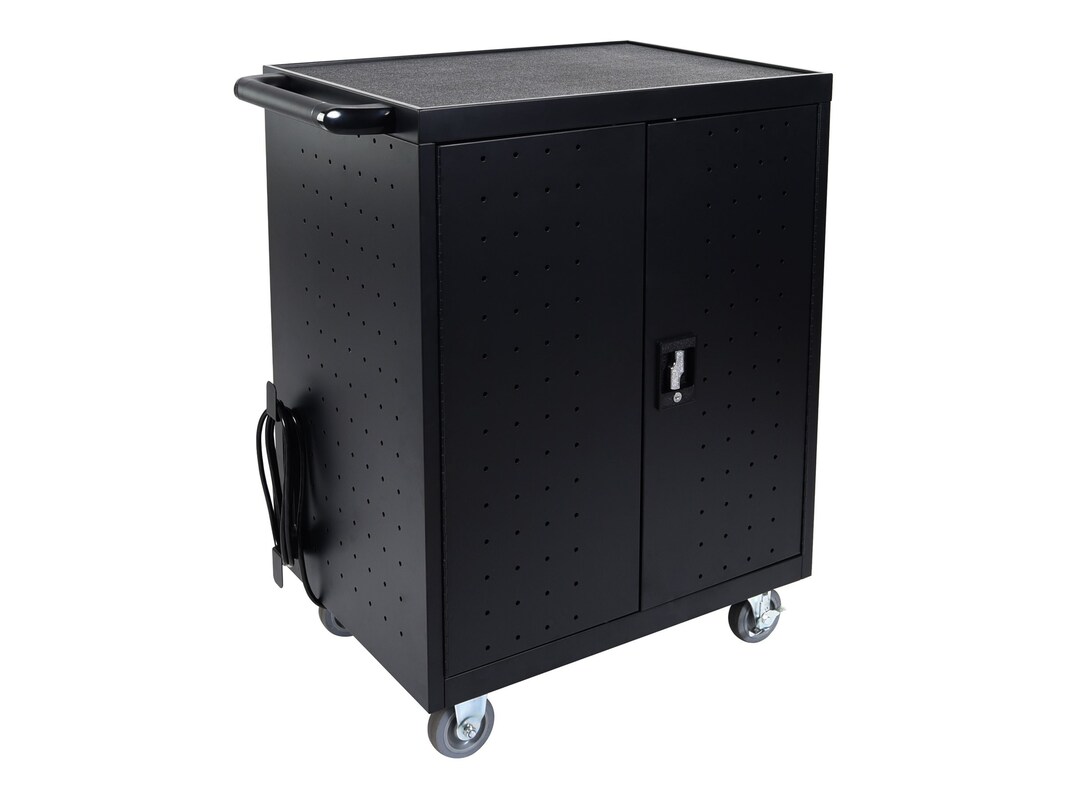 This durable and energy-efficient charging cart includes an ETL Listed timer that alternates between two 16-outlet power strips, so you can charge in stages without overloading circuits – and with the use of only one power cord. Solid steel construction provides strong protection and, like all Luxor charging carts, rubber-coated dividers that won't scratch devices and provide impact protection during transit. Its four casters make it easy to move from location to location and assembly is simple - just attach the casters and handle and you're ready to roll.