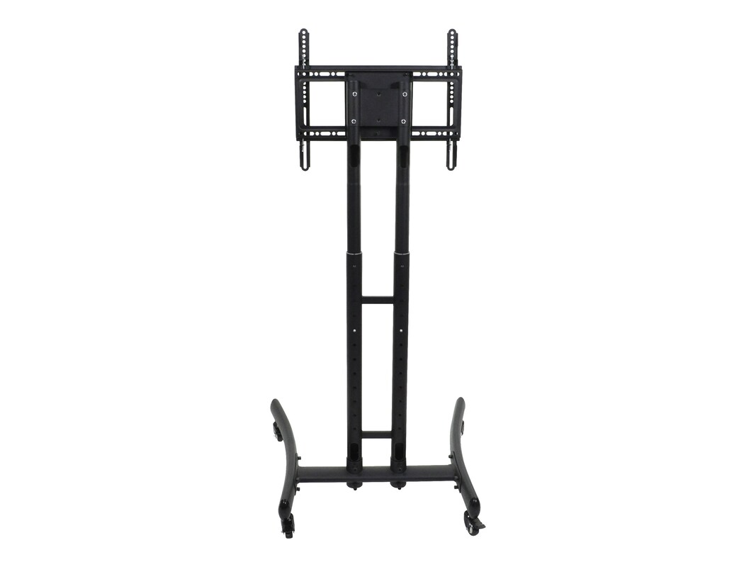 Effortlessly roll your TV between offices, trade shows and classrooms with the Luxor adjustable-height rolling TV stand. The steel mount holds up to a 70" TV and adapts to various viewing environments with an adjustable height range of 40" to 60". Once in place, four locking casters safely provide a sturdy and stationary display. Allow yourself the freedom of movement with this slender, durable TV stand.