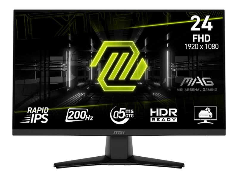 The MSI MAG 242F is a 24-inch desktop monitor designed to elevate your viewing experience. Featuring a native resolution of 1920 x 1080 and a refresh rate of up to 200 Hz, this monitor delivers smooth, sharp images and responsive gameplay. With an impressive response time of just 0.5 ms, ghosting and blurring are kept to a minimum, making it suitable for fast-paced gaming and multimedia applications.