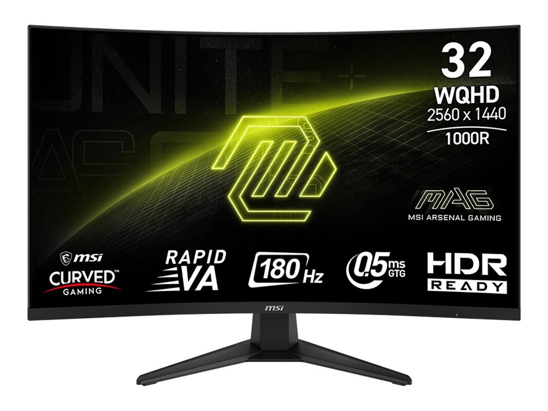 The MSI MAG 325CQF is a 32-inch desktop monitor designed for immersive viewing experiences. With a resolution of 2560 x 1440, this monitor delivers visuals supported by a contrast ratio of 3500:1 and brightness of 300 cd/m2 for vibrant image quality. The TFT active matrix technology allows for response times of 0.5 ms, making it ideal for gaming and fast-paced actions. With a screen curvature of 1000R and a wide viewing angle of 178 degrees, the monitor ensures that users can enjoy consistent visuals from nearly any perspective.